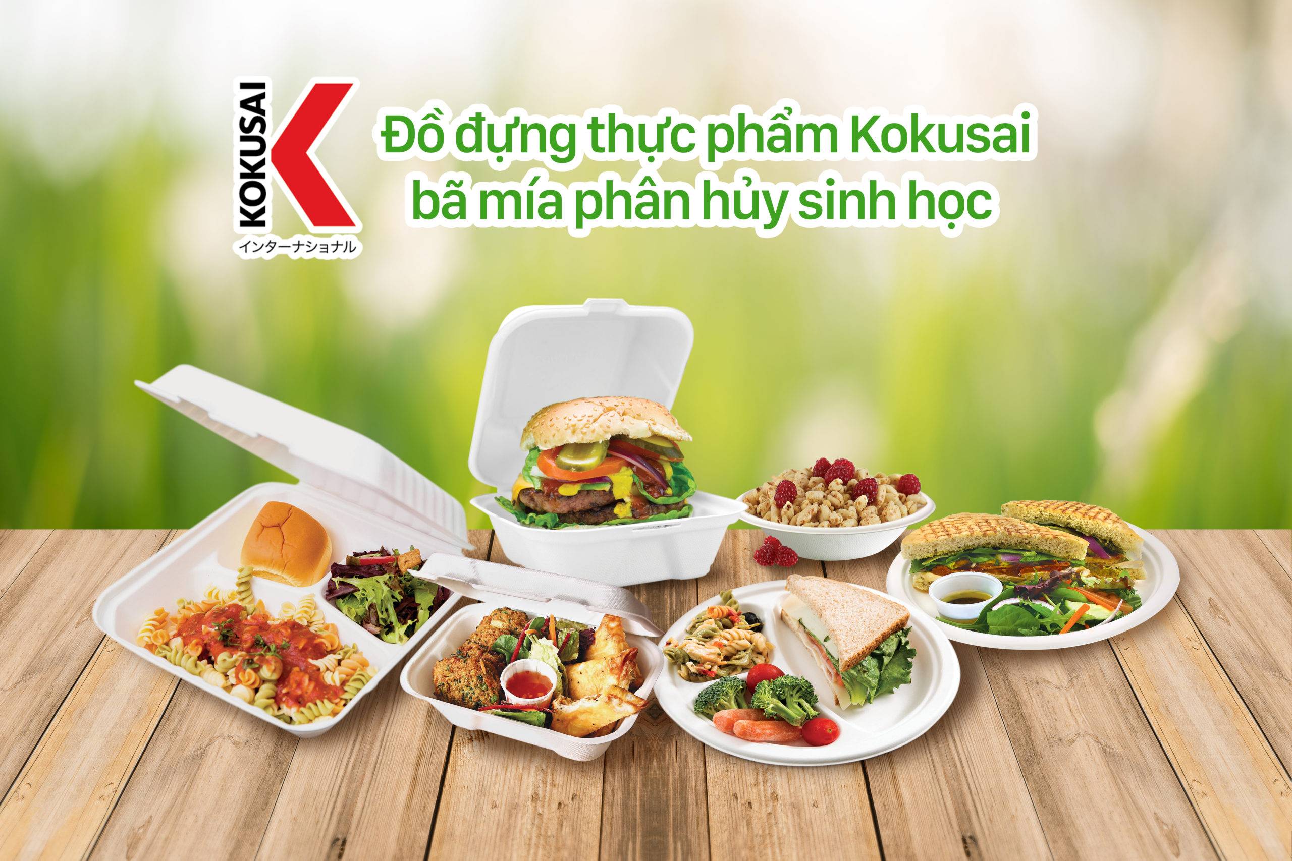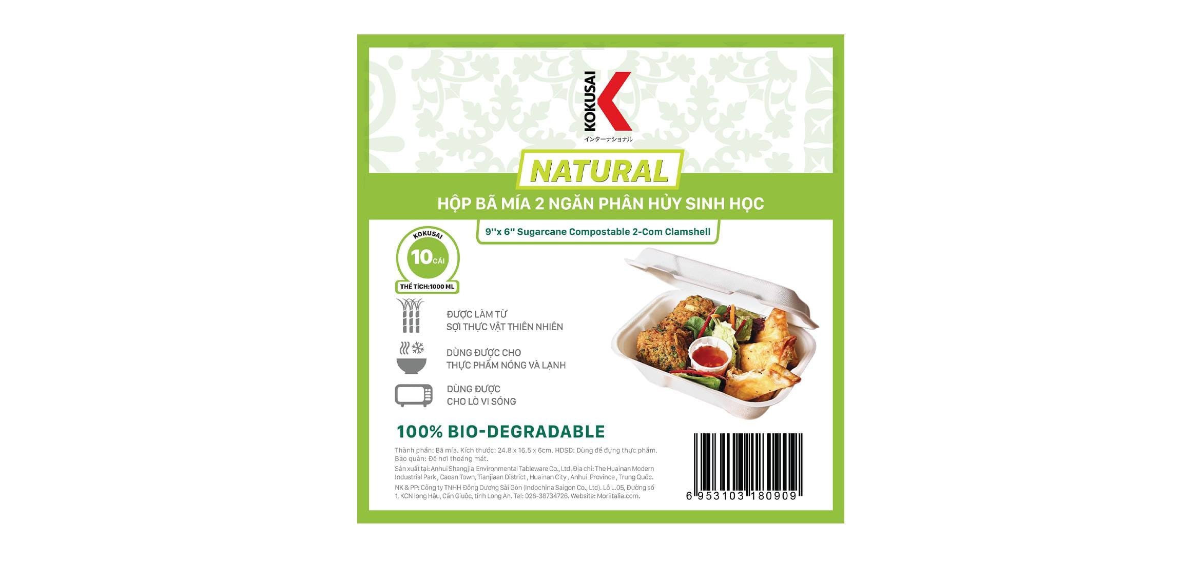 Hộp bã mía 2 ngăn phân hủy sinh học KOKUSAI 9INx6IN – 180909