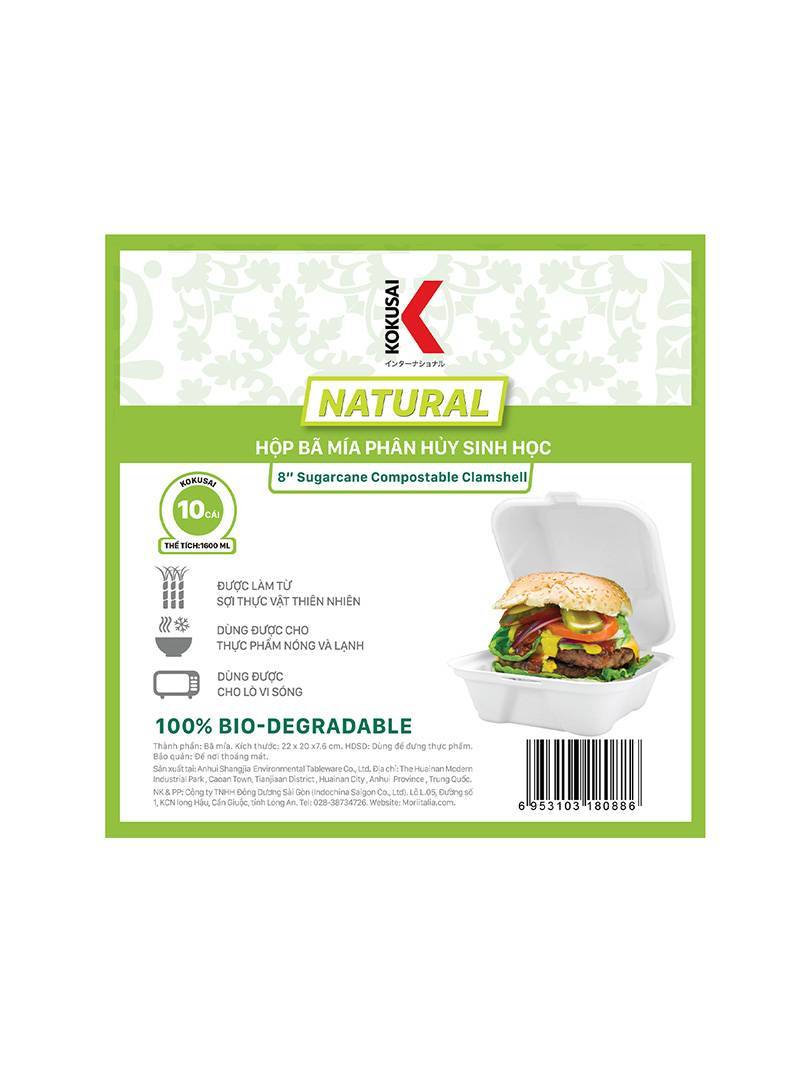 Hộp bã mía phân hủy sinh học KOKUSAI 8IN Lốc 10 cái – 180886