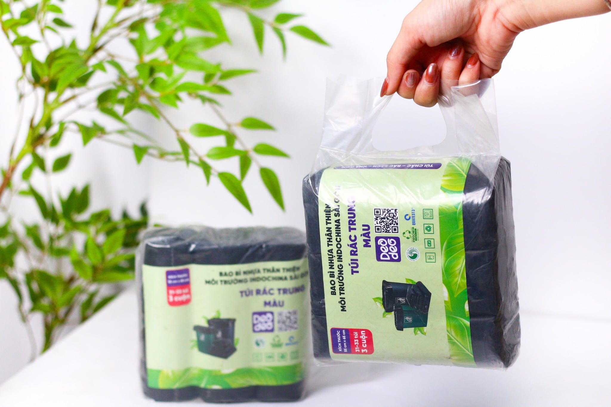 Túi rác DEODEO màu đen, làm từ nhựa HDPE tái sinh kết hợp phụ gia an toàn, dẻo dai và khó rách. Túi chịu lực tốt, dễ gói gọn, kiểm soát mùi hiệu quả, hỗ trợ phân loại rác và bảo vệ môi trường. Sản phẩm đạt chứng nhận nhãn sinh thái Việt Nam, phù hợp cho gia đình, văn phòng và nhiều nhu cầu sử dụng.